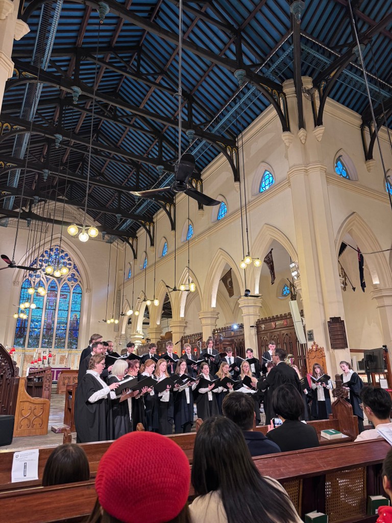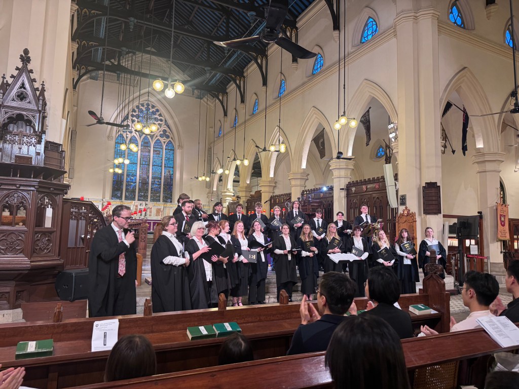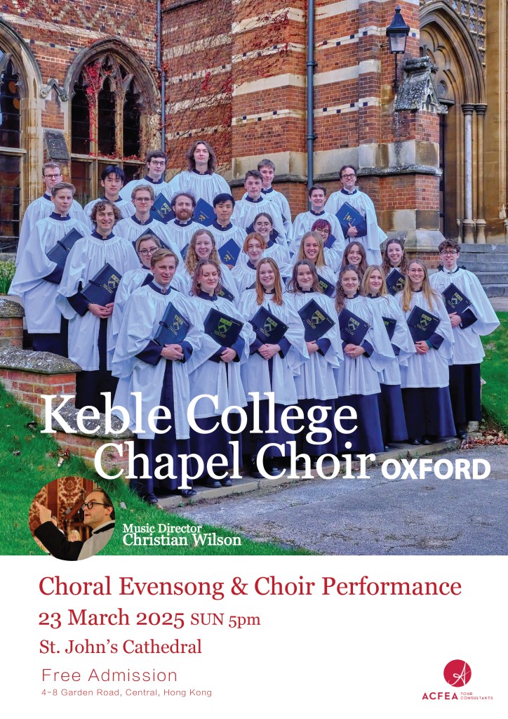 The Choir of Keble College, Oxford, recently visited Hong Kong for a joyful reunion with alumni. During their stay, they joined St. John’s Cathedral as guest choristers for the Choral Evensong, and after the worship, they performed several choral pieces that were warmly received and greatly enjoyed by the Hong Kong audience.